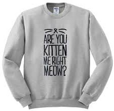 We use DTG Technology to print on to are you kitten me right meow sweatshirt