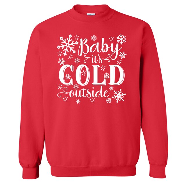 We use DTG Technology to print on this Baby It’s Cold Outside Crewneck Sweatshirt