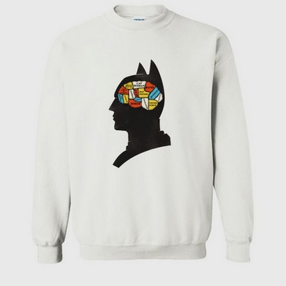 We use DTG Technology to print on to Batman Phrenology Sweatshirt..