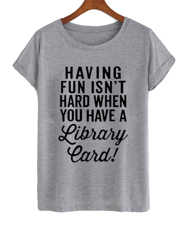 We use newest DTG Technology to print on to Having Fun Isn’t Hard When You Have a Library Card Tee.