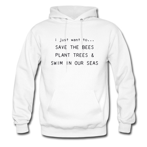 Buy I Just Want To Save The Bees Plant Trees & Swim in our Seas Hoodie