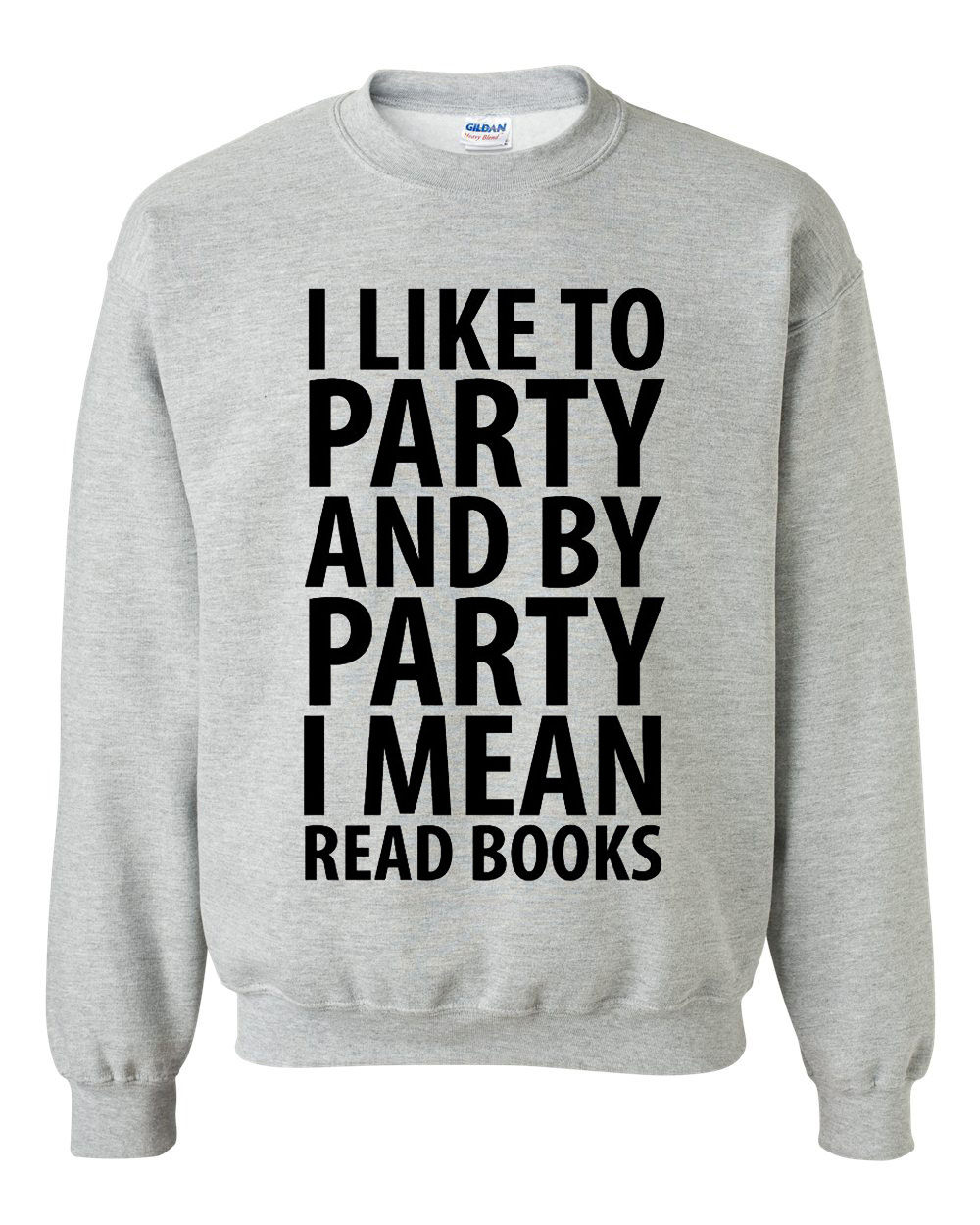 We use DTG Technology to print on this I Like To Party And Read Books Sweatshirt.