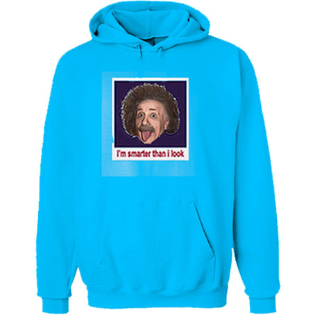 We use newest DTG Technology to print on to I’m Smarten Than I Look Einstein Hoodie.