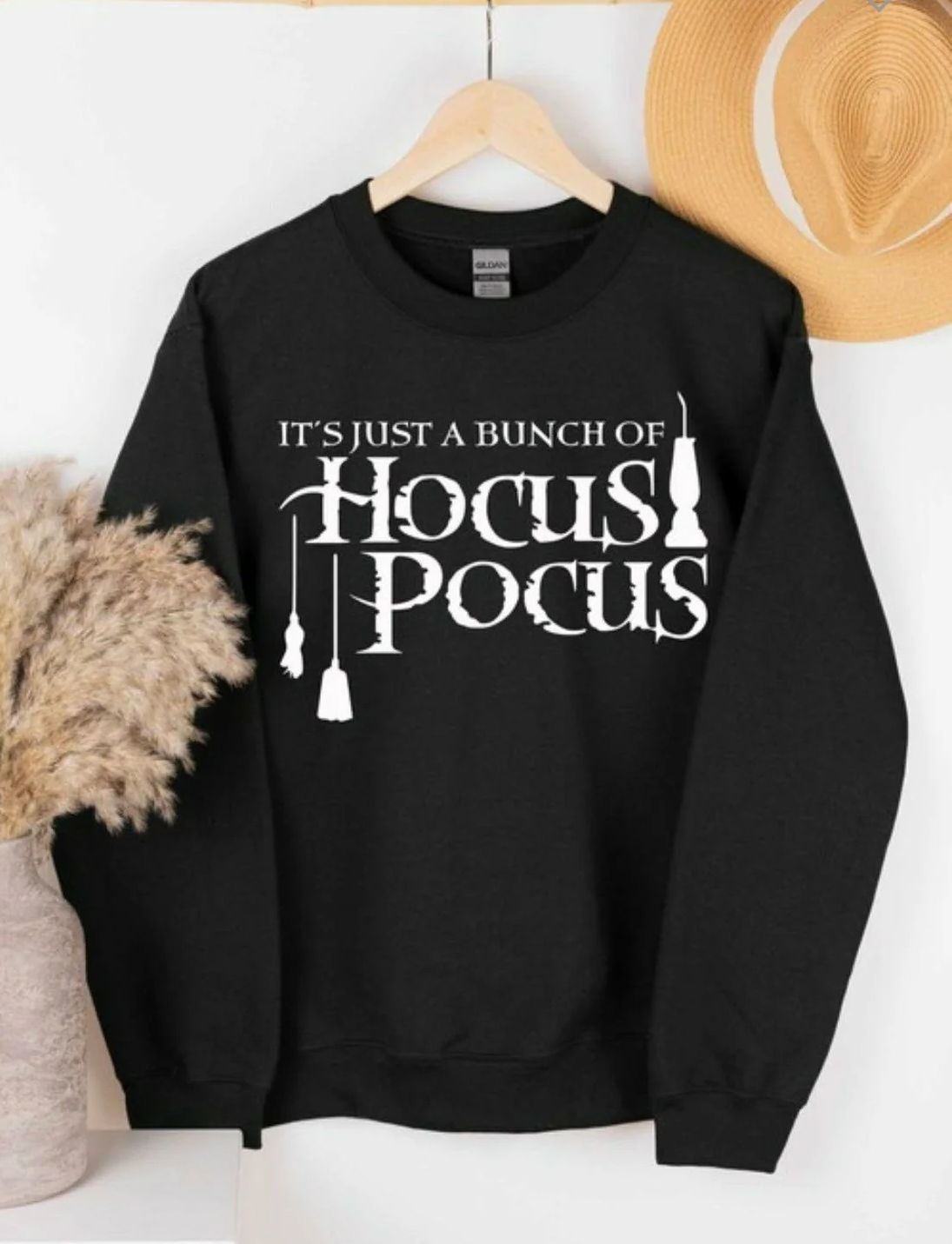 We use DTG Technology to print on It’s Just a Bunch of Hocus Pocus Sweatshirt.