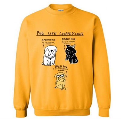We use DTG Technology to print on to Pug Life Confessions Sweatshirt.