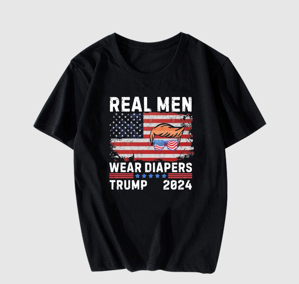 We use newest DTG Technology to print on to Real Men Wear Diapers Trump 2024 Memes T-Shirt.
