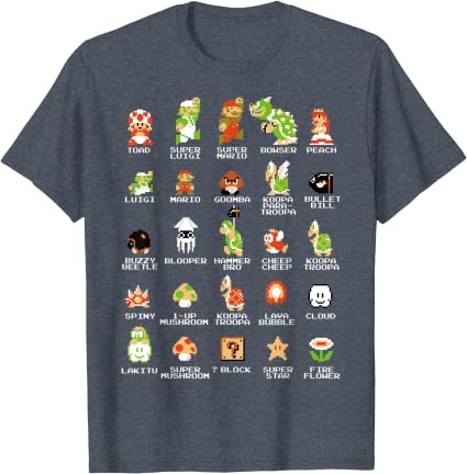 Have question about Super Mario 8-bit Pixel Icons List Vintage T-Shirt? Please feel free to contact us, thank you for visiting!